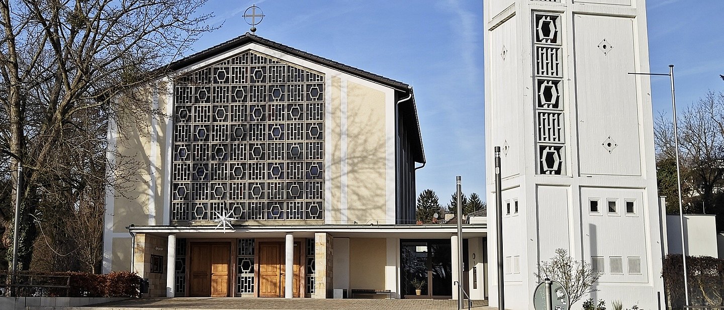 Das Kirchengebäude geniest als Kulturdenkmal und baulicher Zeuge seiner Zeit den höchsten Denkmalschutz des Landes Hessen und bildet mit dem Neubau des Pfarrhauses und dem Gemeindezentrum aus dem Jahr 2014, ein stimmiges Gebäudeensemble. Es definiert, buchstäblich hervorgehoben durch den großzügig gestalteten Vorplatz, das Entree zum Landschaftspark Walkmühltal- Anlage